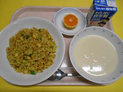 ピラフには『大豆』が、ポタージュには、豆乳が入りました。