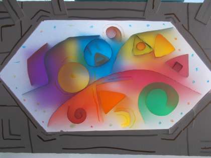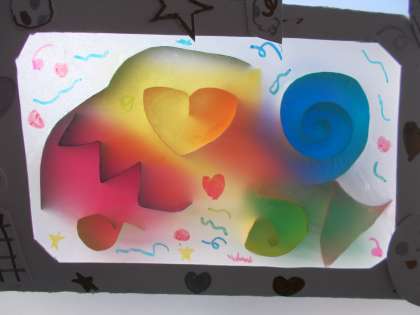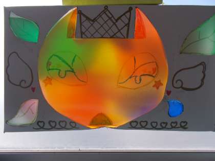 4年生は、トレ−シングペーパーを使って、透けて色が輝く作品をつくりました。