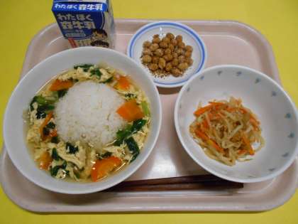 たまご雑炊のだしは、昆布とかつお節でとりました。