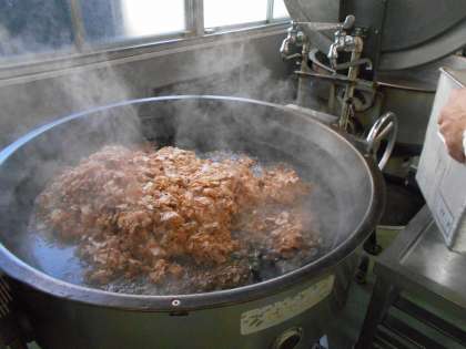 黒糖大豆は、戻した大豆に片栗粉をまぶし、揚げ、ごまと
