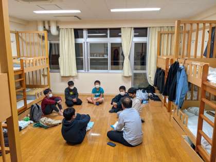 21時10分から、部屋ごとのミーティングで、班長会の報告と今日の反省を話し合いました。