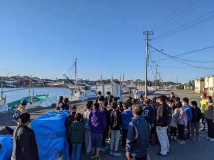 大原漁港の見学。いずみ市役所の方が説明に来てくれました。初めて知ることが多かったようです。