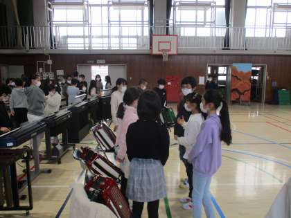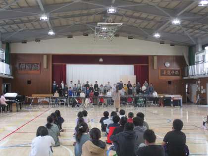 今日の練習は、6年生に演奏を聴いてもらい、合唱・合奏がよりよくなるためのアドバイスをもらいました。