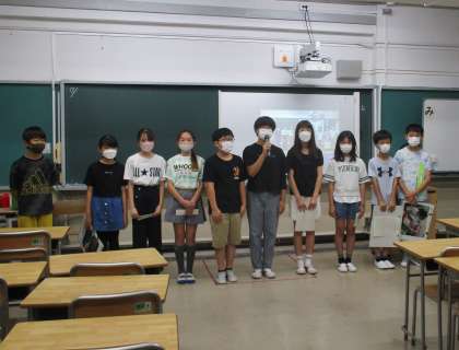 5・6年放送委員会の児童10人が、仲良く協力して活動する様子を、写真やジェスチャーを入れながら、わかりやすく発表してくれました。