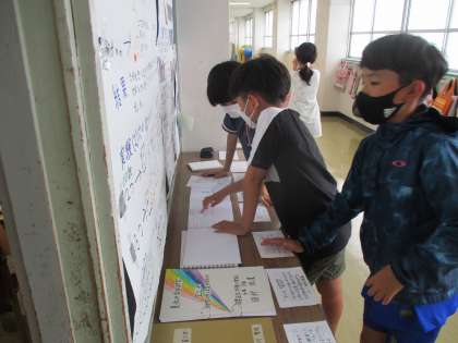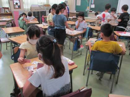 夏休みの自由研究をゆっくり見たり、教室では、お絵かき、読書、トランプ・UNOで楽しんだり、室内での過ごし方を工夫していました。