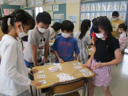 今日は一日中雨のため、休み時間は室内で過ごしました。