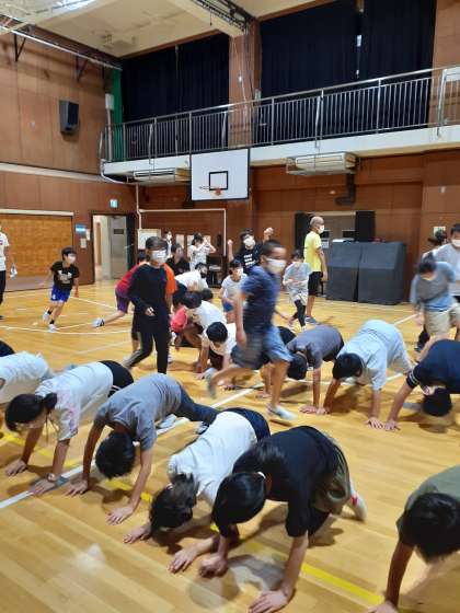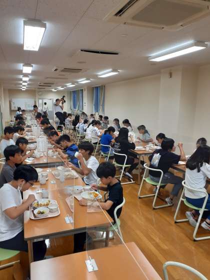 夕食はみんな大好きカレーでした。食後は、体育館でレクリエーションタイム。ゲームは協力が必要なものばかり。
