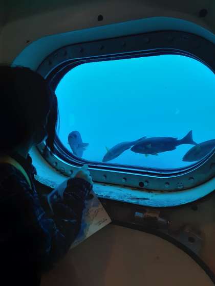 海の博物館、海中展望を見学。海に関する動植物に興味をもてたかな?