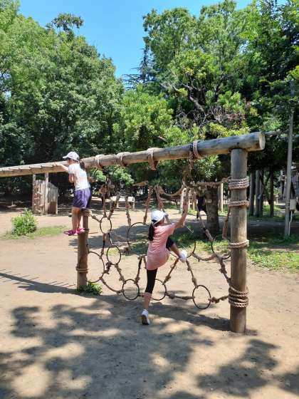 とてもよい天候に恵まれ、熱中症に気を付けながら、アスレチックを楽しんでいます。