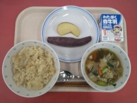 牛乳大根めしすいとんふかしさつまいもくだもの(りんご)鶏肉(宮崎)精白米・玄米(...