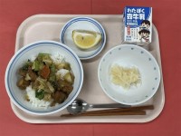 牛乳もうかさめとキャベツのピリ辛丼ゆず大根くだもの(はるか)もうかさめ(宮城)精...