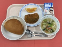 牛乳ミルクパンしいらのフライ野菜スープくだもの(ネーブルオレンジ)しいら(長崎)...
