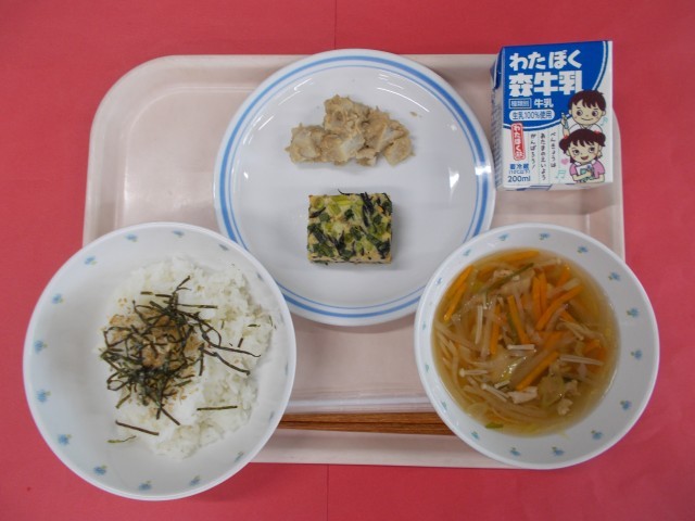 ちりめんじゃこ(広島)のり(兵庫)たまご(栃木)鶏肉(宮崎)干ひじき(三重他)精白米(秋田)さといも(千葉)こねぎ(福岡)だいこん(青森)にんじん(北海道)えのきたけ(長野)長ねぎ(秋田)