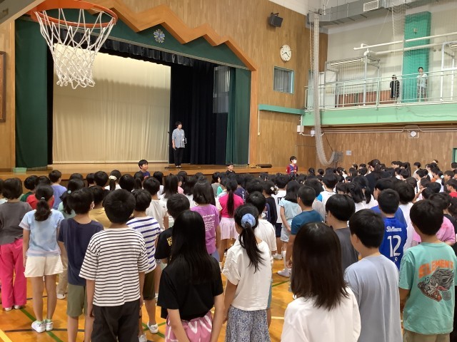 今週の週目標「健康スポーツタイムは、外で元気よく遊びましょう」と、体を動かしていくことを、全員で確認しました。