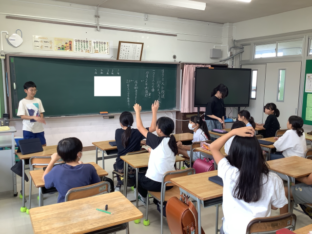 五本木小学校の学校生活がよりよくなるために、意見を出し合っています。