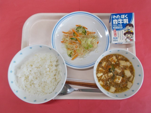今日は、豆腐でマーボー豆腐を作りました。ごはんと一緒にもりもり食べて、今日も元気にすごしましょう。