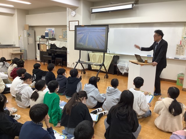 今日は6年生の保護者でもある君塚さんに来ていただき、再生可能エネルギー(特に太陽光発電)について話をしていただきました。この学習をkeynoteでまとめて、発表する予定でいます。