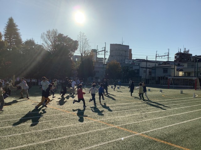 今日の児童集会は、インベーダーゲーム集会でした。ルールは、3分以内に鬼にタッチされないように、ゴールにある箱に玉を入れます。途中で捕まった人はスタートまでやり直しです。皆、鬼に捕まらないように上手に避けていました。