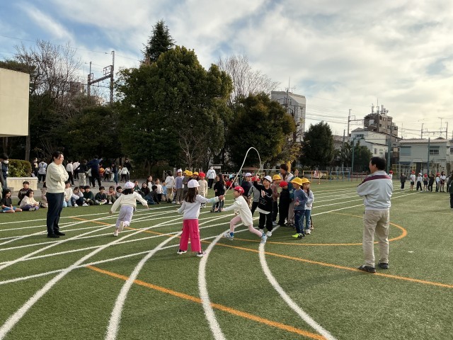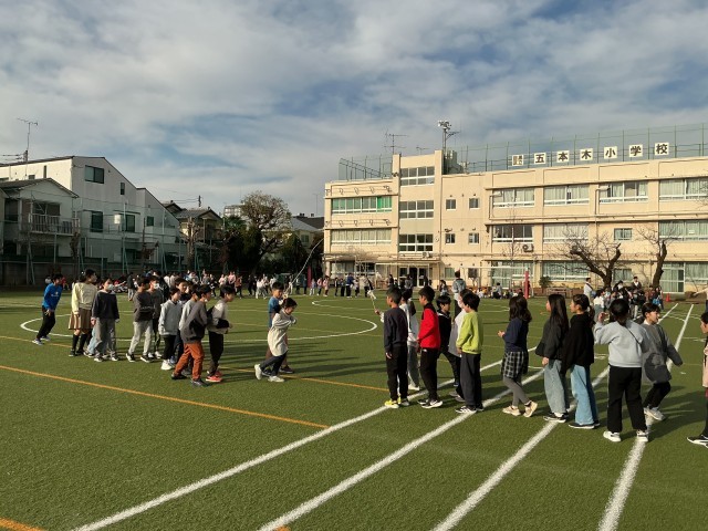 今日は、長なわ集会がありました。前半は1・3・5年、後半は2・4・6年と4組に分かれて行いました。それぞれのクラスが健康スポーツタイム等に一生懸命練習に取り組み、本番は練習の成果を発揮しました。