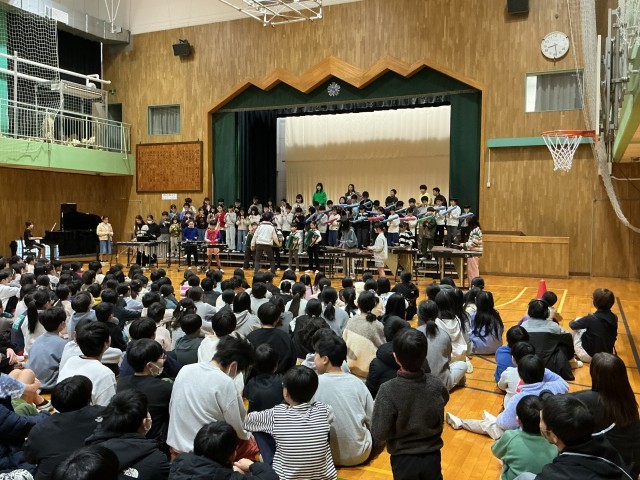 昨日の音楽朝会では、5年生が連合音楽会で演奏する曲を全校児童の前で披露しました。曲目は、「広い世界へ」の合唱と、「怪獣の花唄」の合奏です。「広い世界へ」では、素敵な歌声を聴かせてくれました。「怪獣の花唄」では、躍動感のある曲で、皆を盛り上げていました。アンコールもあり、もう一度「怪獣の花唄」を披露しました。
