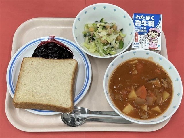 豚肉(埼玉・茨城他)いんげんまめ(国産)ひよこまめ(米国)まぐろ米油漬け(キハダマグロ:輸入または国産)じゃがいも(北海道)冷凍ブルーベリー(東京都八王子市)レモン果汁(瀬戸内)にんにく(青森)玉葱(北海道)にんじん(千葉)エリンギ(長野)ホールトマト(イタリア)だいこん(神奈川)キャベツ(愛知)こまつな(埼玉)