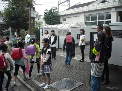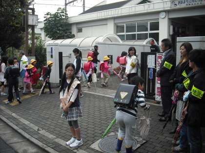 正門前にたくさん人がいるので戸惑っている子もいましたが、元気にあいさつが子どもが多かったです。