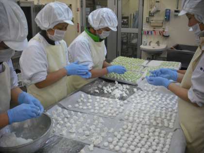 3色の白玉を作るのは初めての試みだったため、給食室は大忙し!
