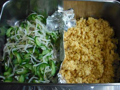 ジャージャーめんは中華めんの上に、肉みそ・野菜・たまごをのせています。