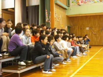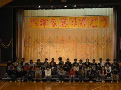 1〜5年生から6年生へ、感謝の気持ちをこめた出し物が行われました。