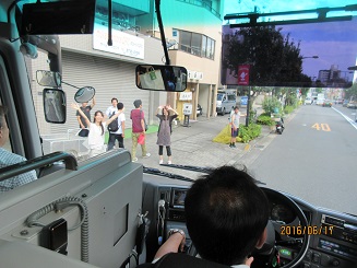 いち早くバス窓から