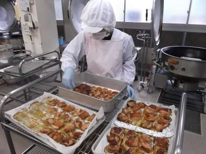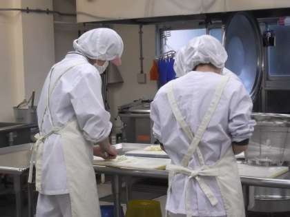 ↑沢煮椀の白髪葱を切る調理員さんはすごい集中力です。