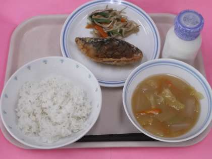 今日の主菜は鯖の柚子風味揚げです。日本一の産地である高知県の学校の栄養士さんに教わって以来、給食で紹介しています。