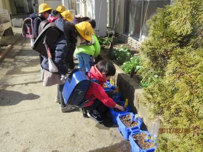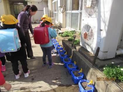 まだ芽が出ていない子もいて心配そう。