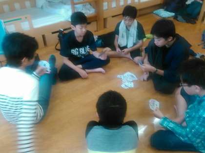 トランプに興じています。