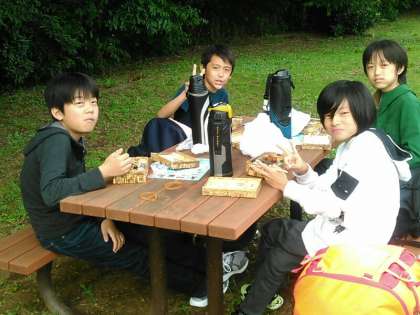 緑の芝生で昼食タイム。
