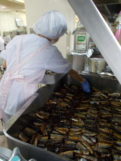 今日は、秋刀魚と昆布を一緒に煮る松前煮を作りました。酢を加えて二時間半煮たことで、骨までホロホロの仕上がりでした。このような煮魚は特に「食べたことがあるか無いか」が大きく影響するようで、恐る恐る口に運ぶ子も少なくありませんでした。柔らかくきれいに煮えた秋刀魚は、「今日の秋刀魚美味しかった!」という児童の言葉につながっていました。