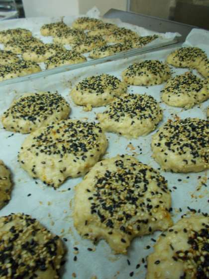 ↑つくねに二色のごまをまぶして焼いた南部焼きです。