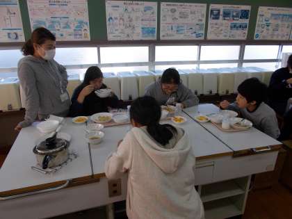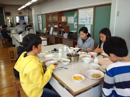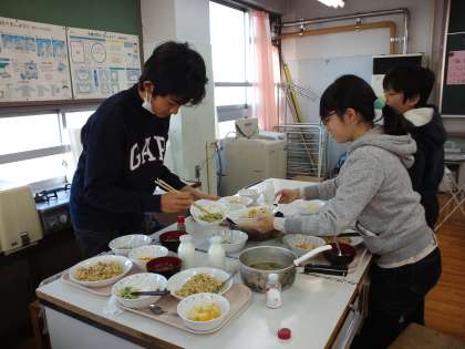 そもそも、「まかせてね!今日の食事」という授業の7・8時間目だったのですが、写真でもわかるとおり、一人一人が本当に丁寧に実習に取り組んでいました。これだけの調理ができたら、もう家でも一食分の食事を任せられるのではないでしょうか。