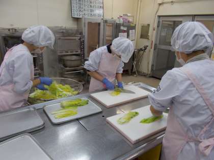 ↑白菜は、葉を大きいまま茹でると味が抜けません。