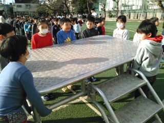 3年生が朝礼台の片付けを