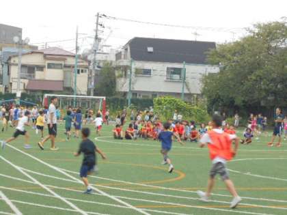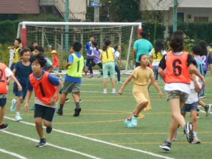 今回の体育朝会は、全員鬼ごっこでした。前半(1組)と後半(2組)に分かれて、6年生が鬼になりました。だんだん鬼が増えていったり、鬼がスキップで追いかけたりと変化に富み、みんなとても楽しそうでした。