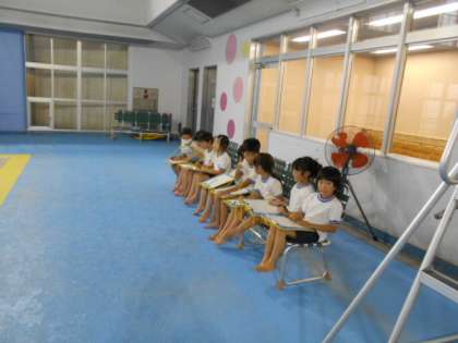 低学年のプール納めでは、各学級の代表児童が今年プールで頑張ったことを立派に発表することができました。見学の児童もいましたが、いつもの通り各自が「学習の流れ」や「気づいたこと」をワークシートに書く活動に取り組んでいました。