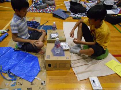 「つながりで守る私たちの町・私たちの命」です。きょうは「避難所生活体験」に取り組みました。必要と思う物を持ち寄り、体育館で仮の避難所生活をしました。仲良くすればいいというだけではない、個人の主張のぶつかり合いやこまったことが起きたときにそれぞれがどのような行動をとるかなど、意義深い学習を展開しました。