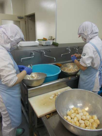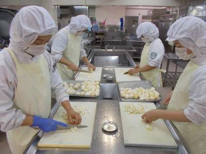 ↑つるつると滑るので切るのも大変ですが、美味しいごはんになることをイメージしながら切っています。