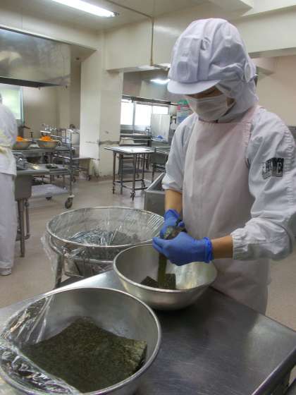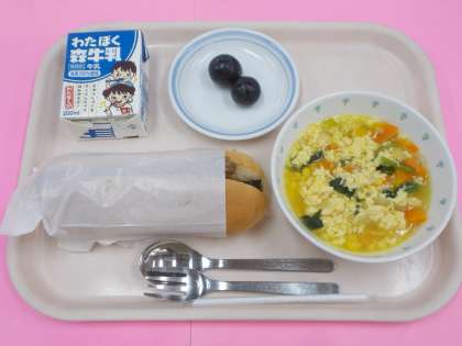ナガノパープルは、皮ごと食べられて甘みが強く、ジューシーなのが特徴です。見る限りでは皮が厚いので、本当に皮ごと食べられるのかな〜と給食室では半信半疑でしたが、食べてみると驚くほどに食べやすく、美味しいぶどうでした。1年生を回っていると、ぶどうを1口も食べずに残そうとしている子が何人もいました。苦手なの?と声をかけてみると、「そうではないけど食べたことないの」と言うのです。だまされたと思って食べてごらんと励ますと、1かじり。「おいしい!」と言って全部食べていました。これが一人ではないのです。やはり、子どもたちにとってお喋りができないということは、このような子が挑戦する機会を失っているということなのだと思います。教室という安心の空間で、友達と刺激しあいながら、先生の魔法の言葉に励まされながら食の幅を広げていたのだと、改めて痛感しています。感染予防のための規則上、なかなか提供できる果物が少ないですが、なんとか子どもたちの食の幅を広げられればと思っています。