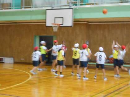 屋内スポーツクラブは、バスケットボールです。小気味よく点が入っていきます。