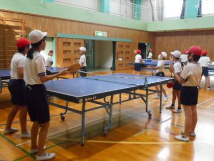 卓球クラブでは、シングルスやダブルスで、試合形式の活動をしていました。