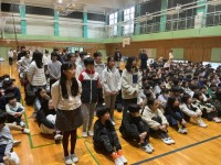 冬休み前の4・5校時に、2年生がグループごとに遊びコーナーを考え、1年生を招いて楽しんでもらうことができました。会場の体育館には、みんなの笑顔が溢れていました。