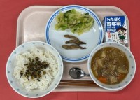 牛乳ごはん豚肉とれんこんのしぐれ煮レモンじょうゆあえとうふのみそ汁豚肉(埼玉・茨...