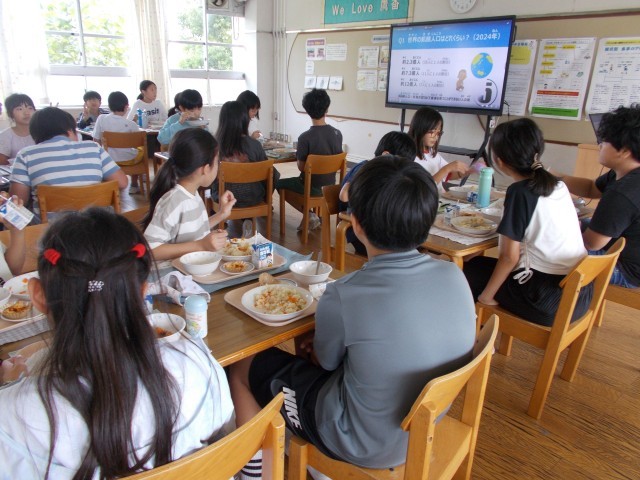 今日は6年1組がランチルームに来てくれました。明日から10月なので、16日の世界食糧デーや食品ロスについての話をしました。10月は食べ物のことや世界の食糧事情のこと、環境のことなどについて考える1か月にできると良いなと思います。